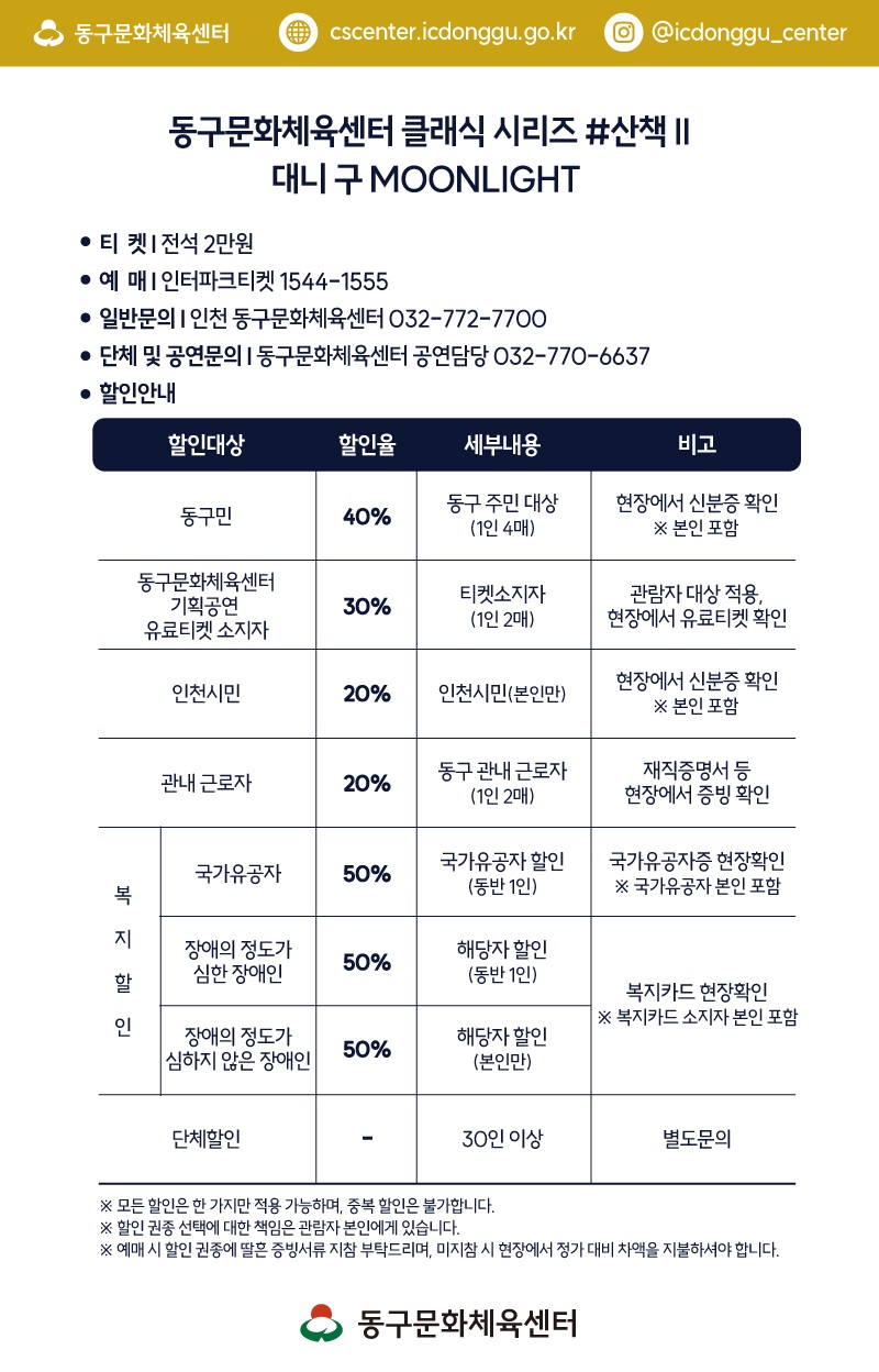 [티켓오픈] 동구문화체육센터 클래식시리즈 #산책 - 대니 구 <Moonlight> 공연안내