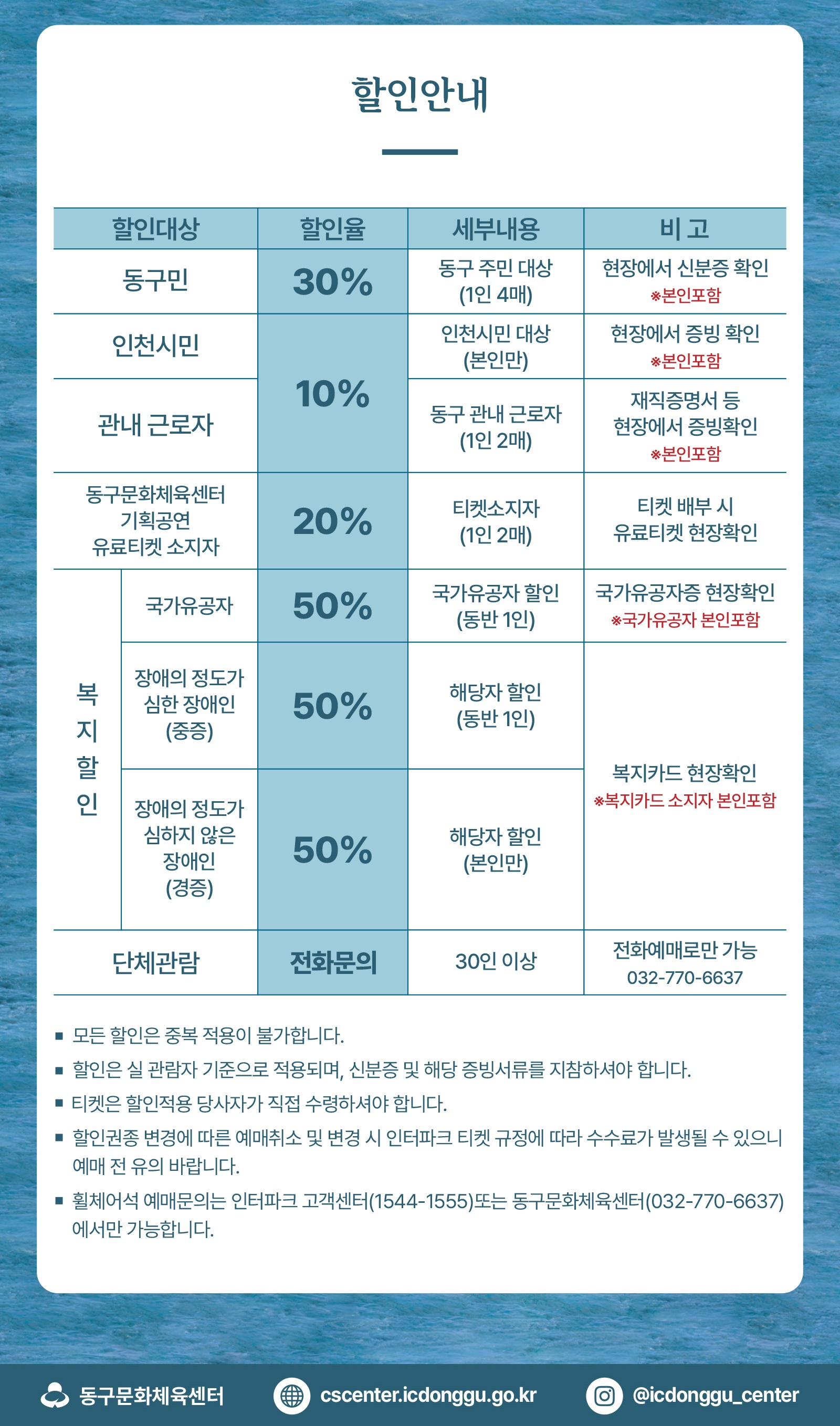❍ 문 의 : 동구문화체육센터 032-772-7700