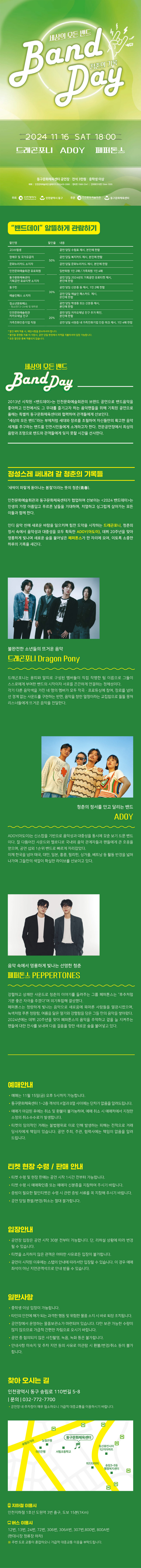 [티켓오픈] 인천문화예술회관X동구문화체육센터 2024 밴드데이 <청춘의 기록> 공연안내