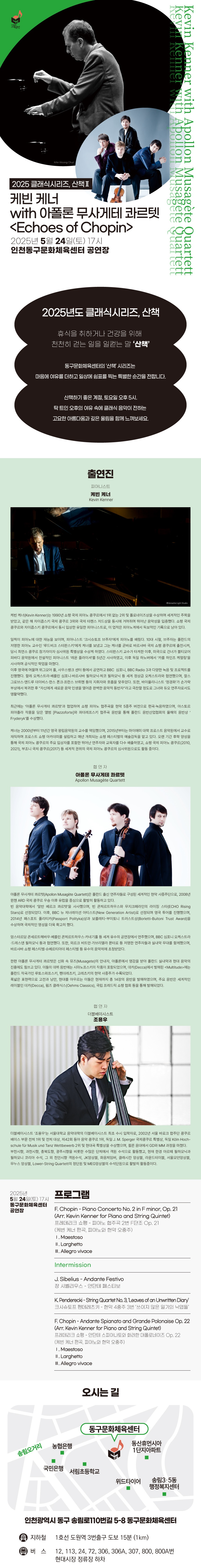 ❍ 공 연 명 : 동구문화체육센터 클래식시리즈, 산책Ⅱ - 케빈 케너 with 아폴론 무사게테 콰르텟 <Echoes of Chopin>