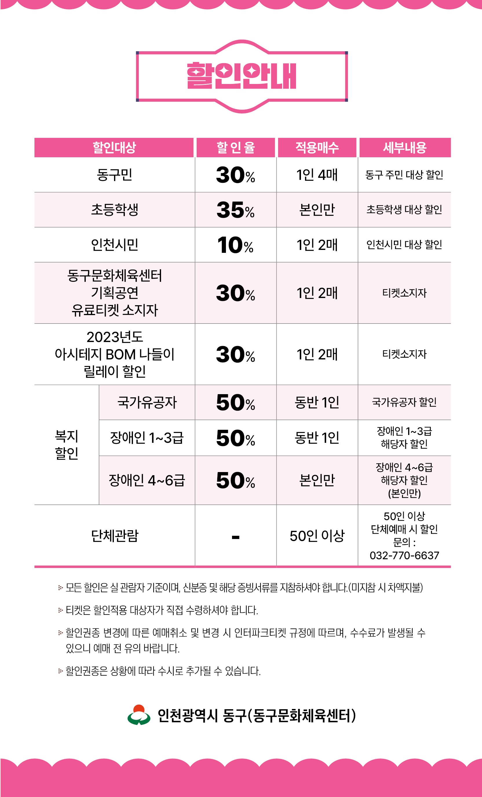 ❍ 문 의 : 동구문화체육센터 032-772-7700