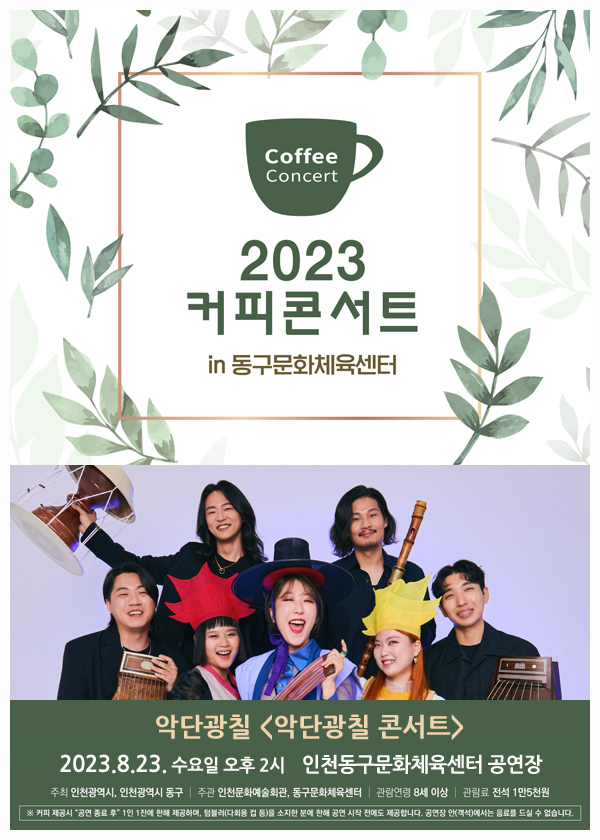 [티켓오픈] 2023 커피콘서트 in 동구문화체육센터 악단광칠 <악단광칠 콘서트> 공연안내