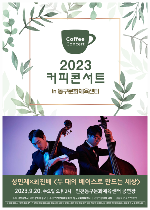 [티켓오픈] 2023 커피콘서트 in 동구문화체육센터 성민제X최진배 <두 대의 베이스로 만드는 세상> 공연안내