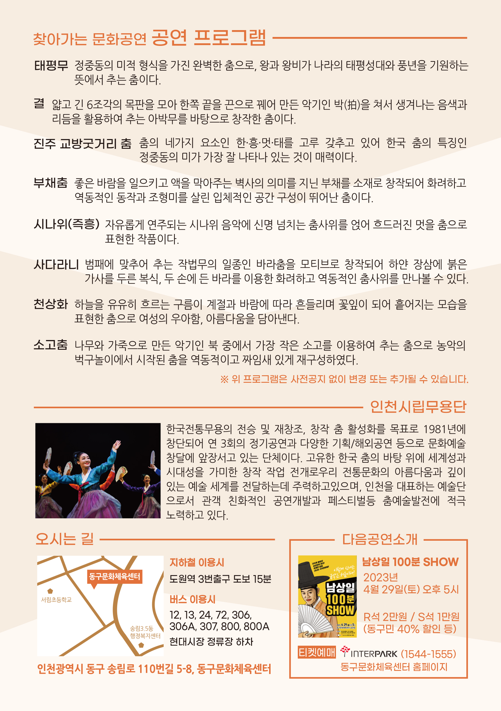 ❍ 공 연 명 : 동구문화체육센터X인천시립무용단 <찾아가는 춤 한 자락>