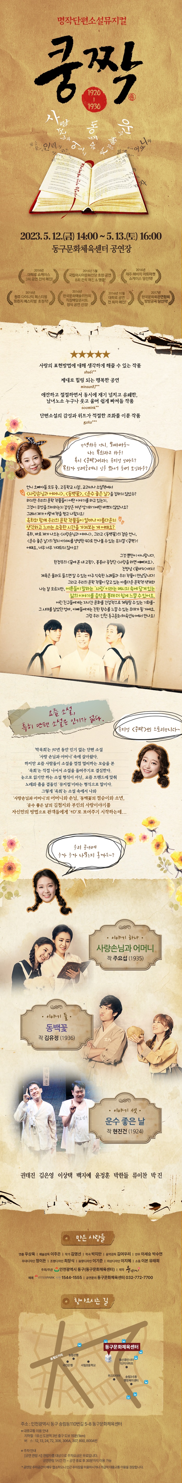 [공연안내] 동구문화체육센터 명작단편소설뮤지컬 <쿵짝> 티켓오픈 안내