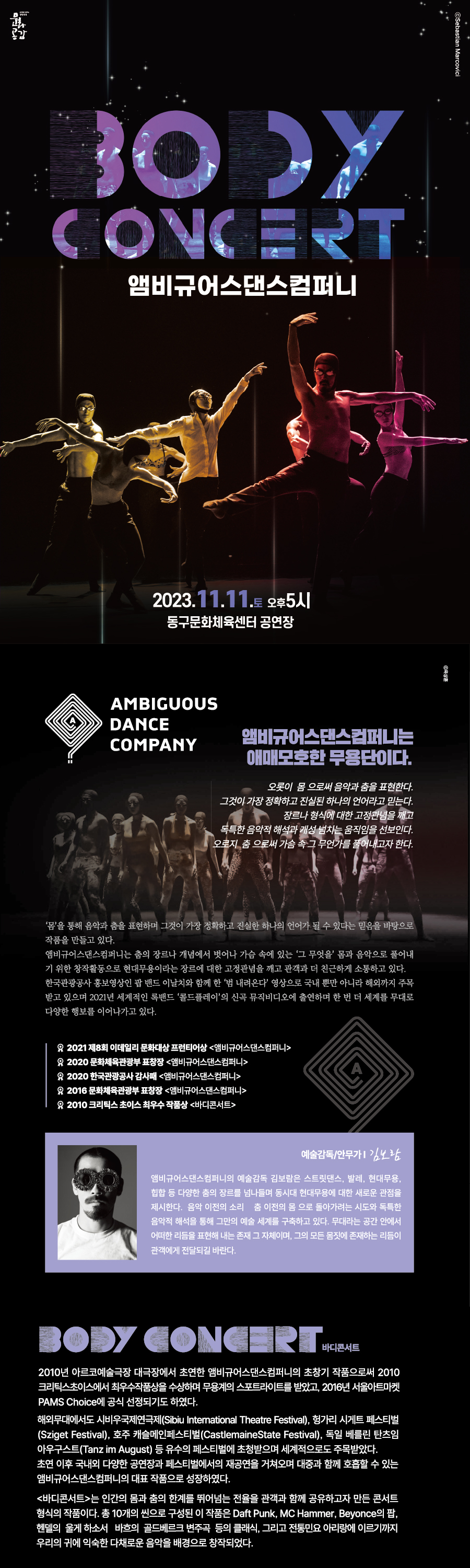[티켓오픈] 동구문화체육센터 앰비규어스댄스컴퍼니 <바디콘서트> 공연안내
